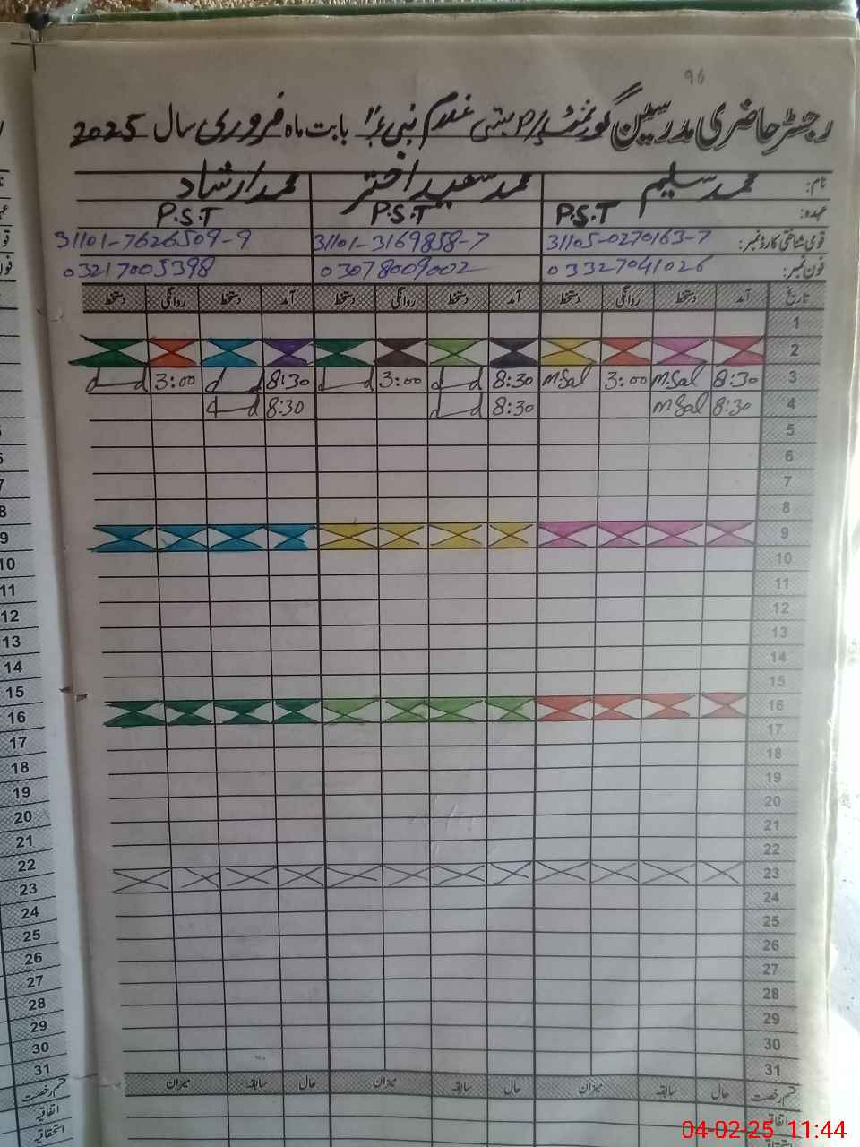 | Name: MU**** SA**** Designation: (School Headmaster's/Headmistress's) PST Phone/Cell Number: 03**** |