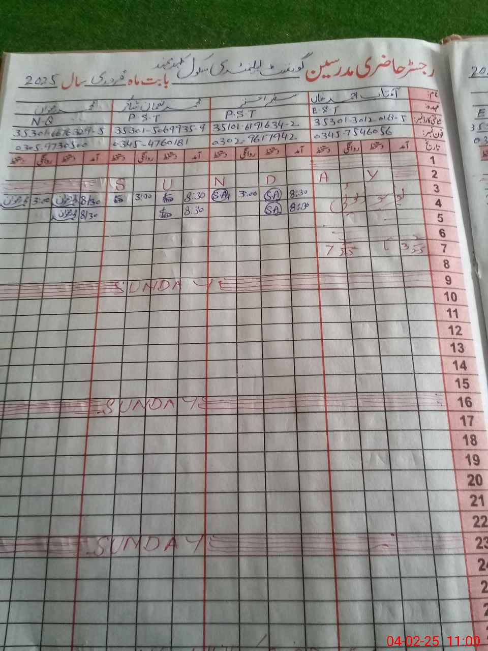 | Name: SA**** UL**** FA**** Designation: (School Headmaster's/Headmistress's) SST Phone/Cell Number: 03**** |