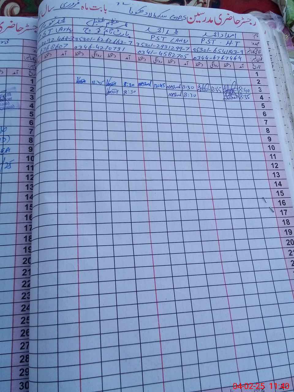 | Name: MO**** LA**** SH**** Designation: (School Headmaster's/Headmistress's) EST Phone/Cell Number: 03**** |