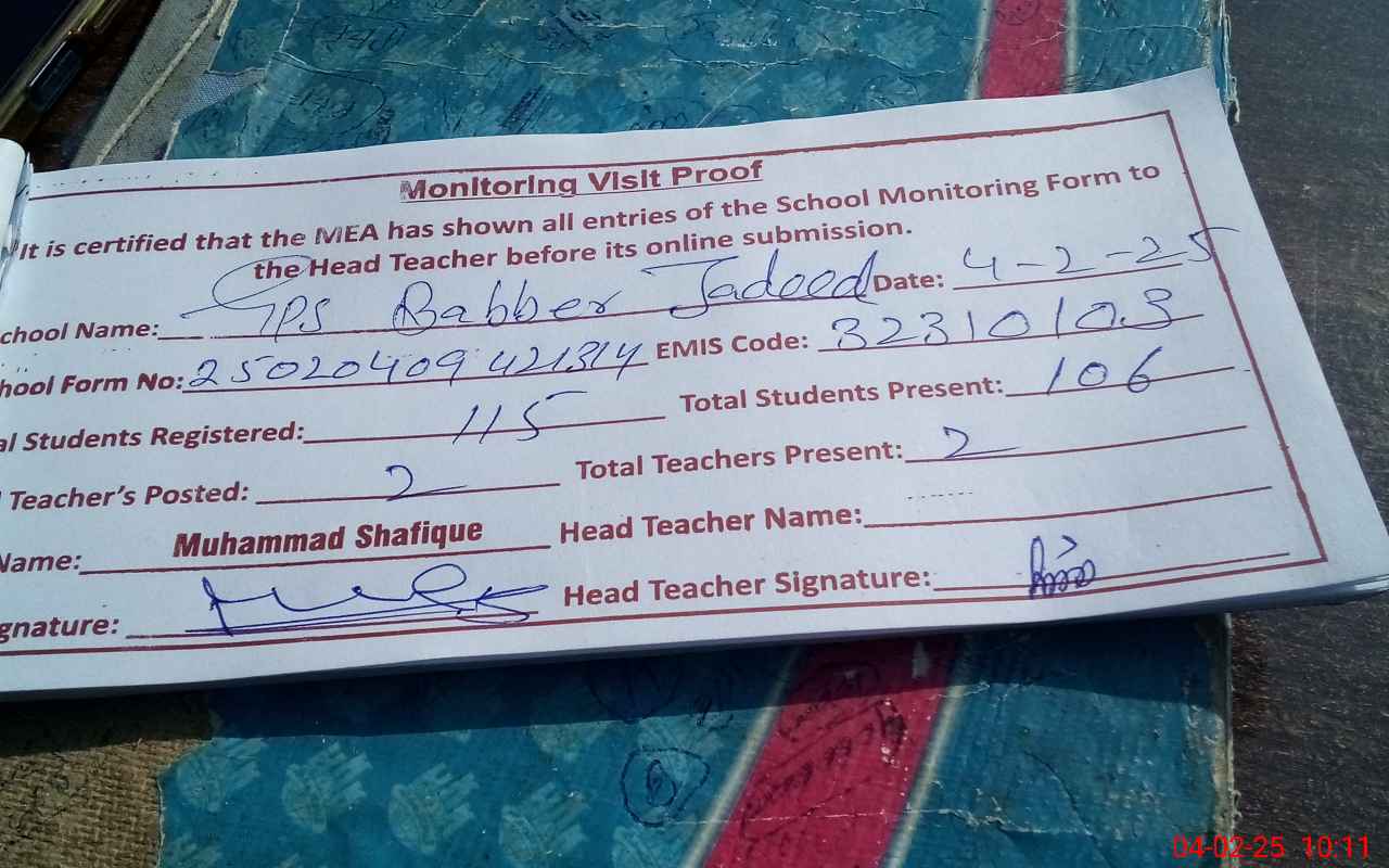 | EMIS Code: 32310103 | Name of School: GPS BABBER JADEED | |||