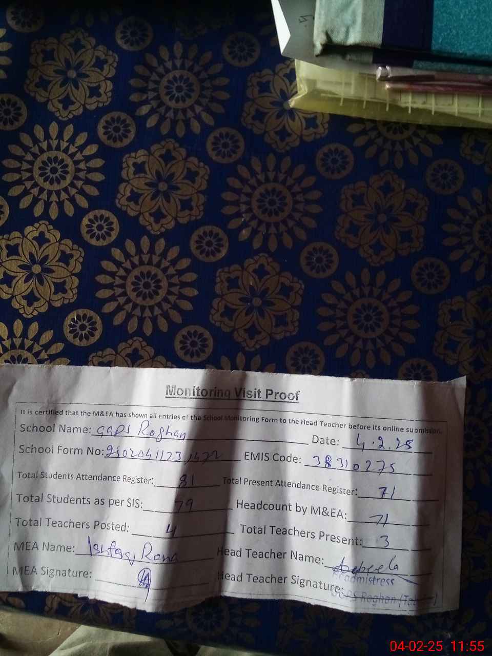 | EMIS Code: 38310275 | Name of School: GGPS ROGHAN P/O TABBI SAR | |||