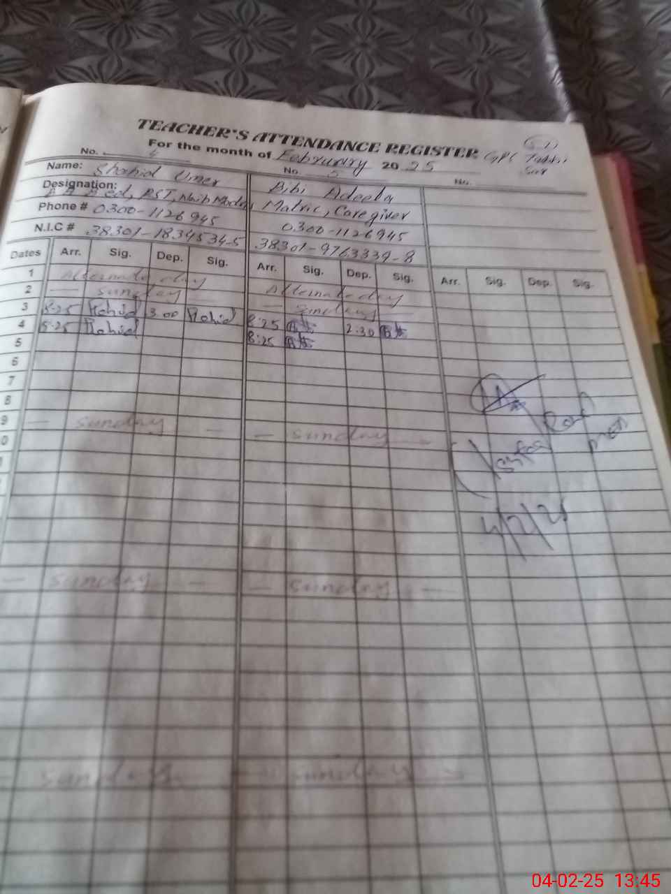 | Name: AJ**** YA**** Designation: (School Headmaster's/Headmistress's) HEADMASTER Phone/Cell Number: 03**** |