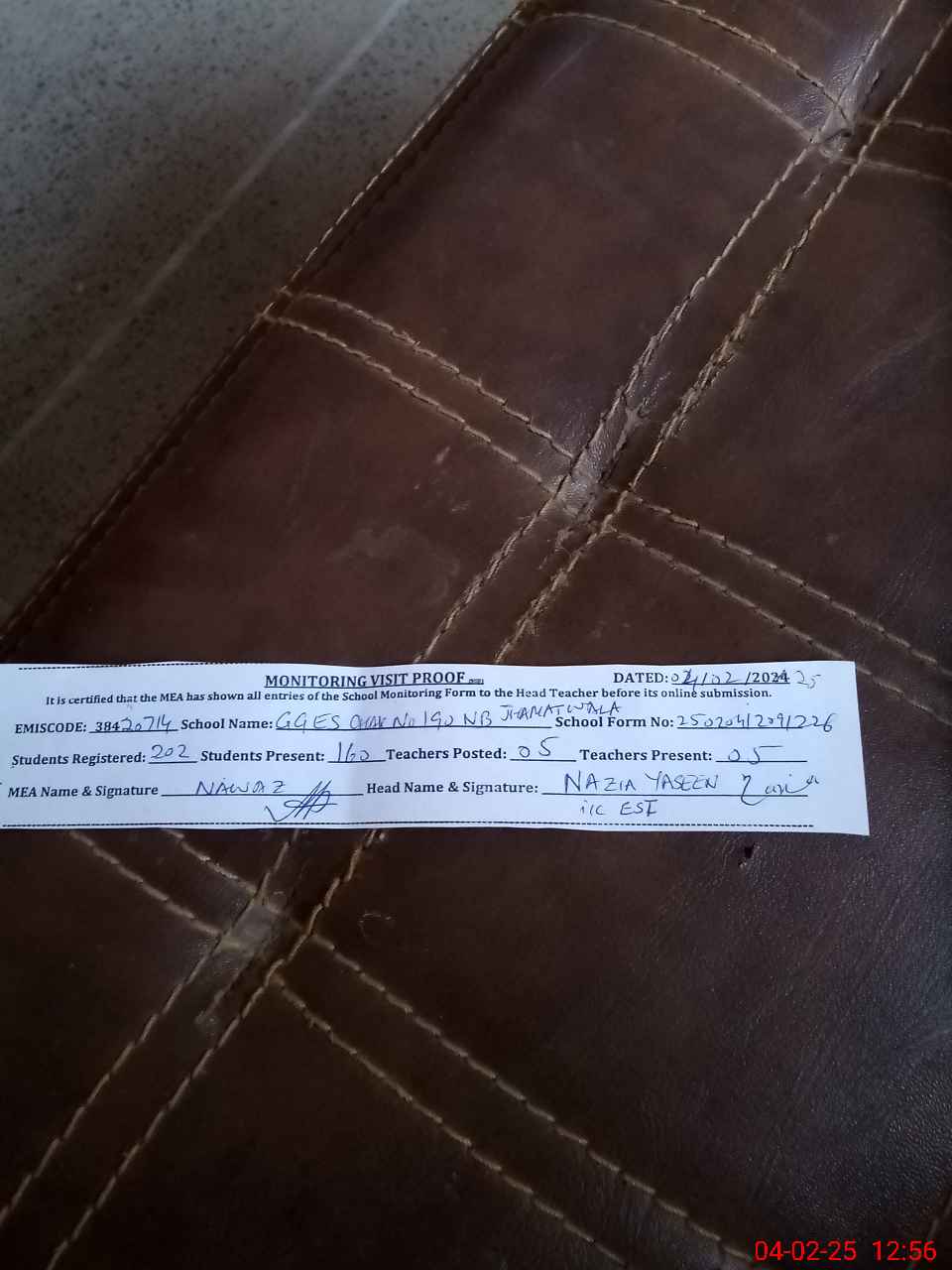 | EMIS Code: 38420714 | Name of School: GGES CHAK NO.190 NB JHAMAT WALA | |||