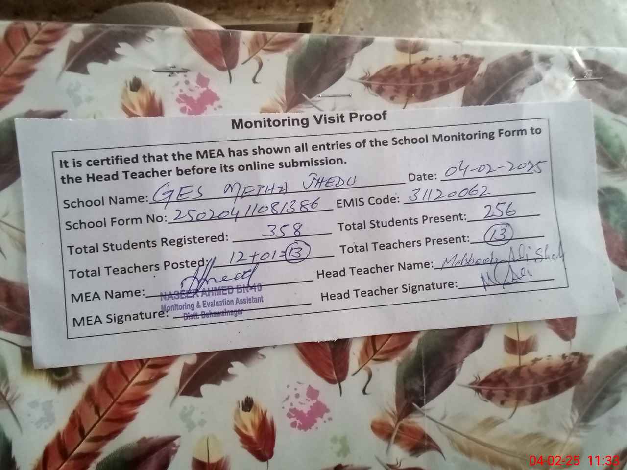 | EMIS Code: 31120062 | Name of School: GES MEHTA JHEDU | |||