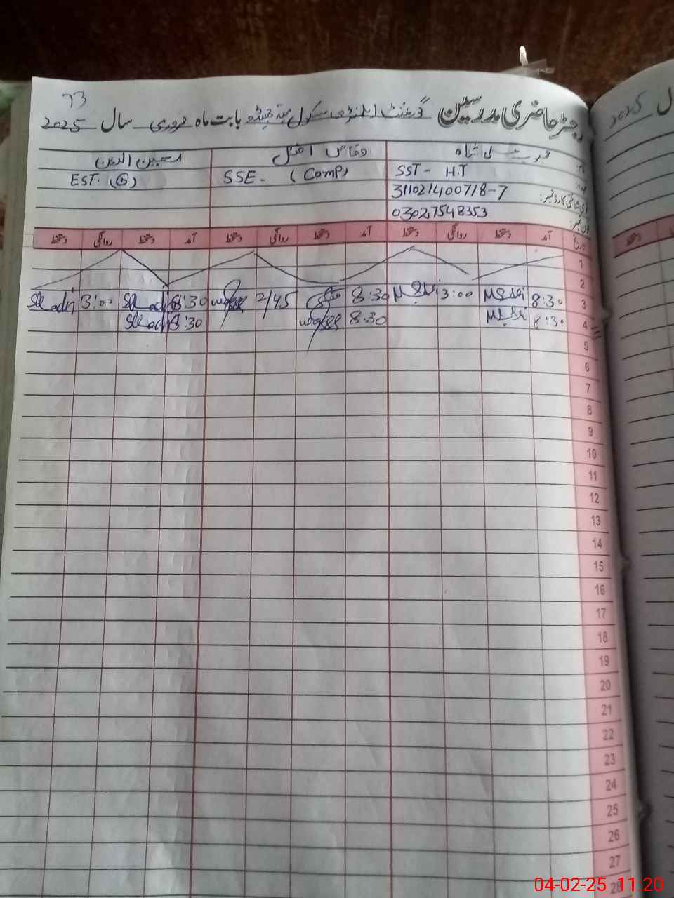 | Name: ME**** AL**** SH**** Designation: (School Headmaster's/Headmistress's) S.S.T. Phone/Cell Number: 03**** |