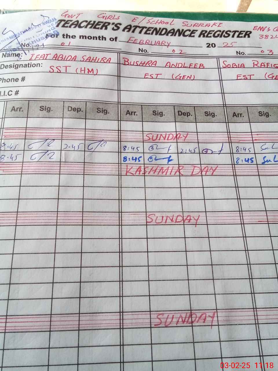 | CNIC | Full Name | Designation | R/C | Absence During Last Calender Month |