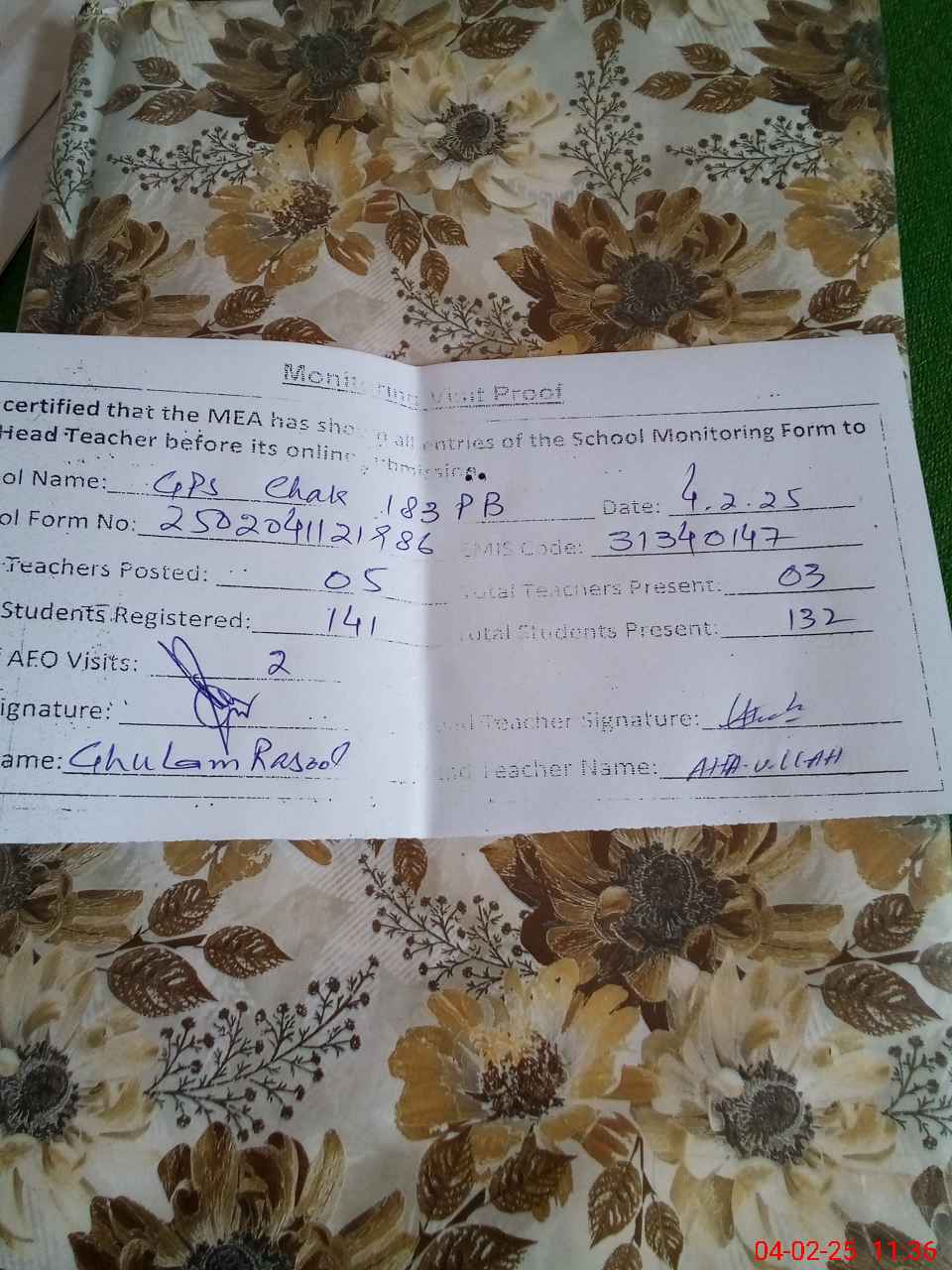 | EMIS Code: 31340147 | Name of School: GPS CHAK NO 183 PB | |||