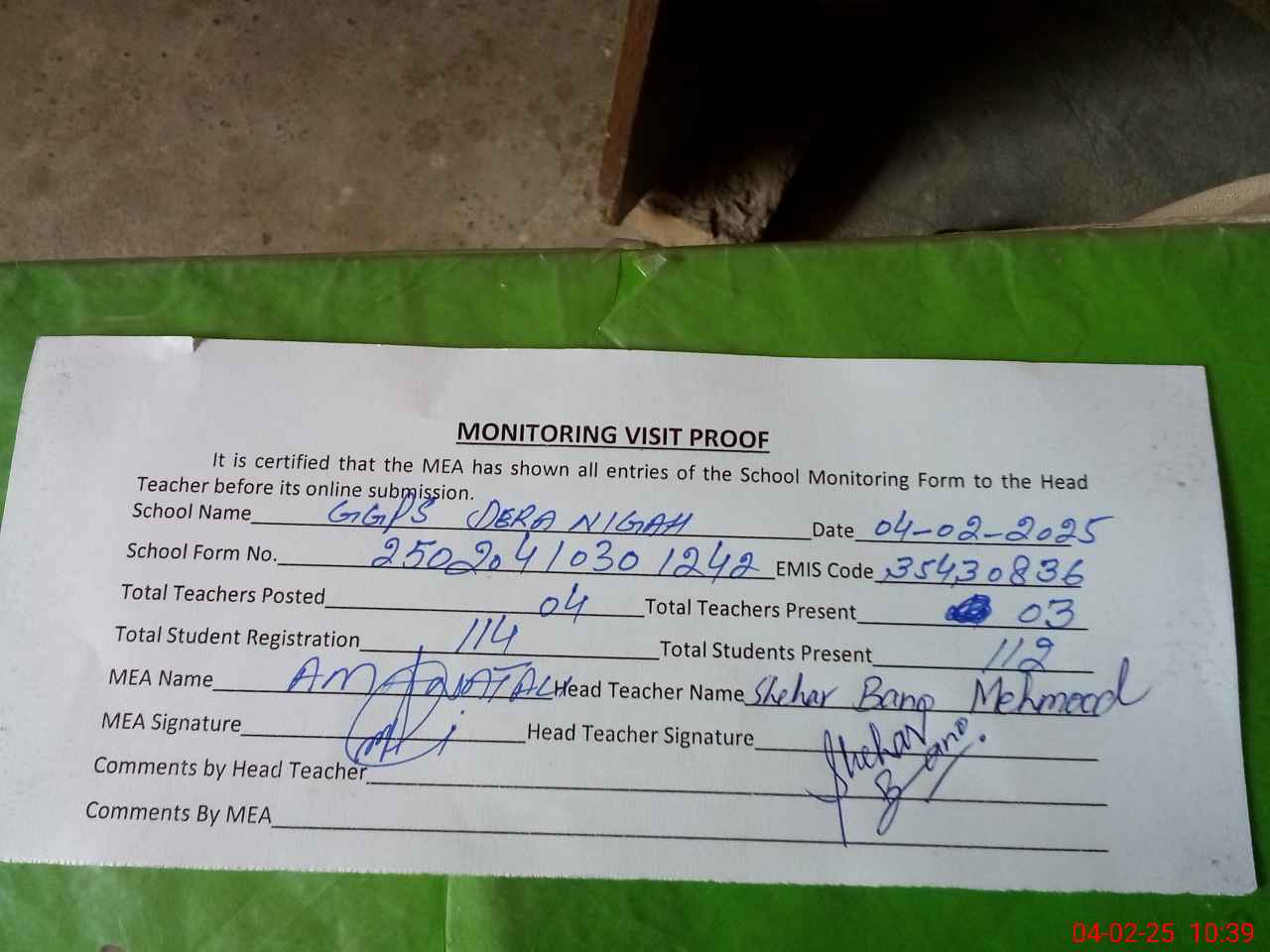| EMIS Code: 35430836 | Name of School: GGPS DERA NIGHA | |||