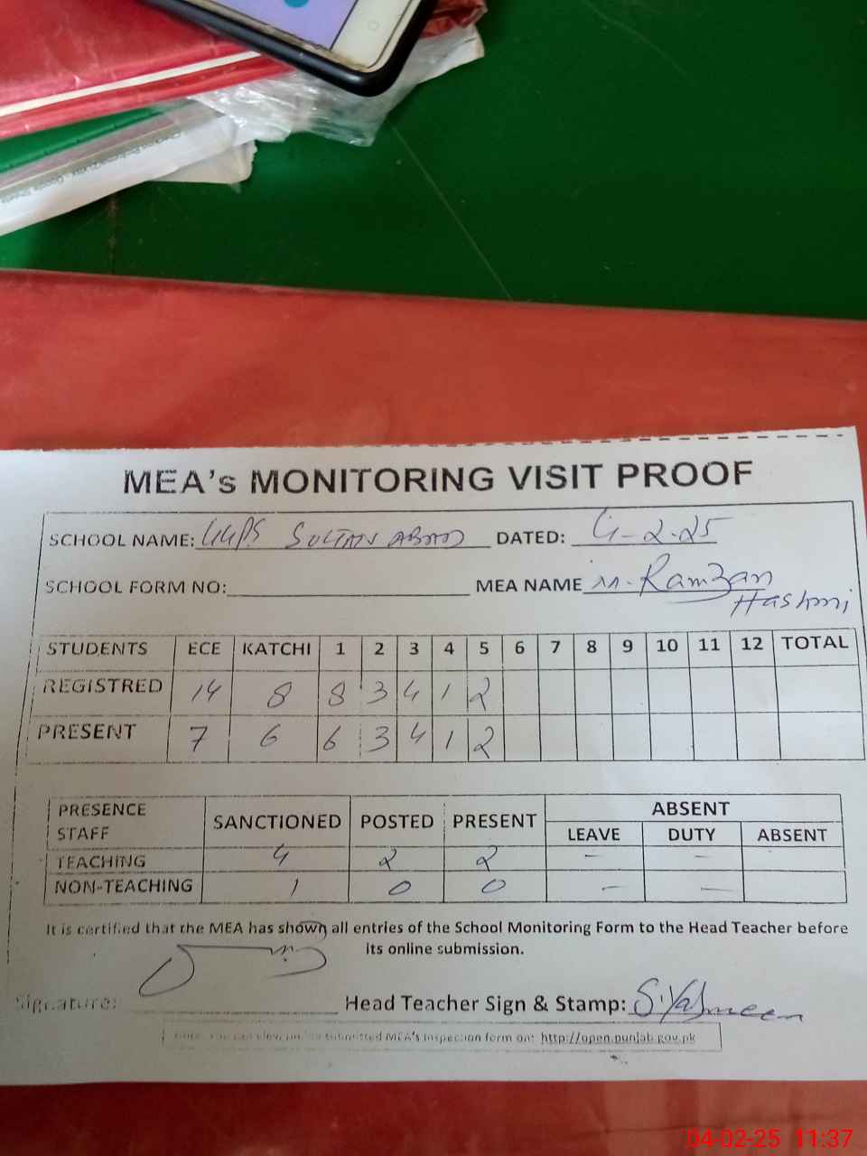 | EMIS Code: 36410339 | Name of School: GGPS SULTAN ABAD, KABIRWALA | |||
