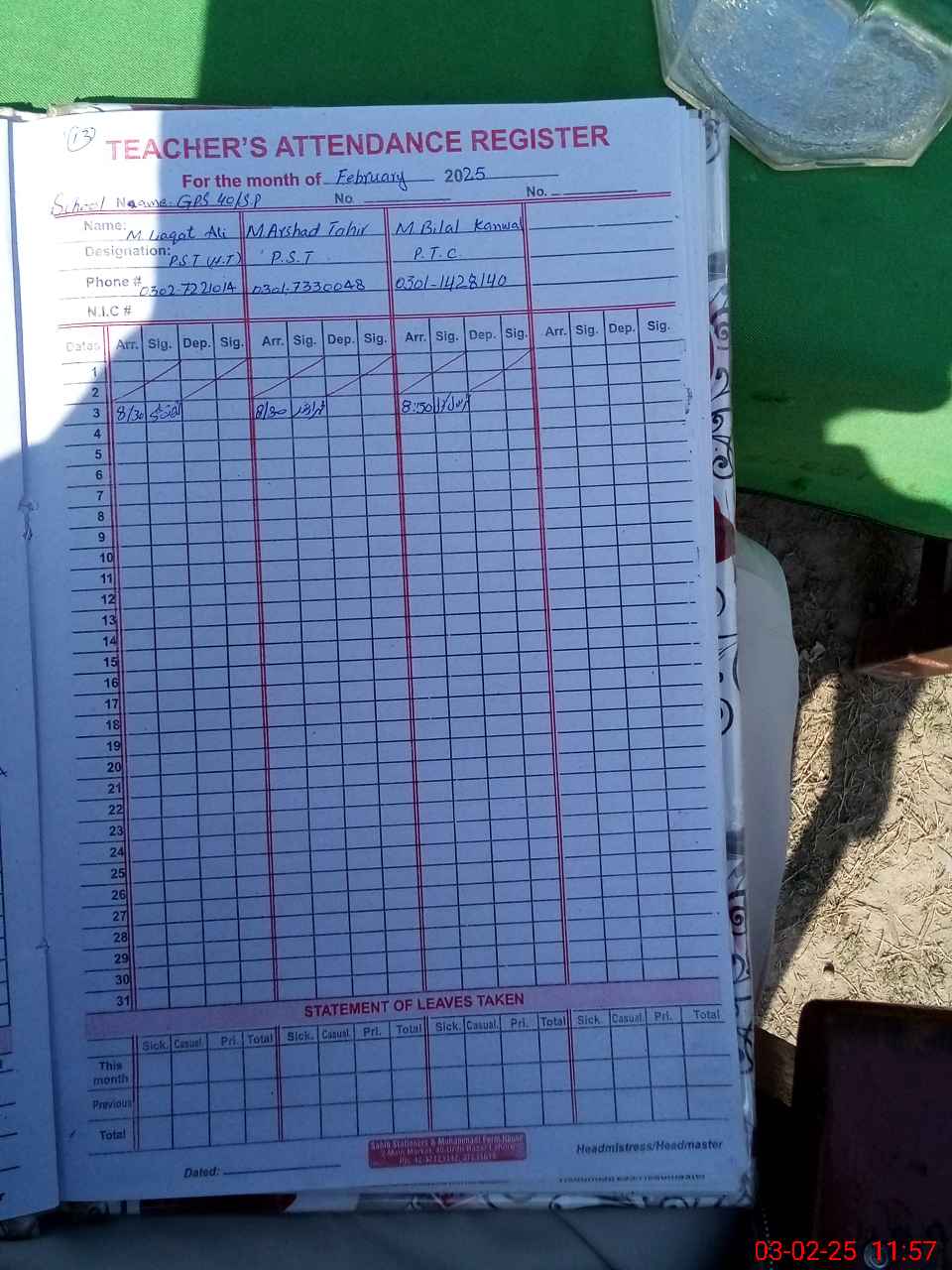 | Name: Li**** Al**** Designation: (School Headmaster's/Headmistress's) PST Phone/Cell Number: 03**** |