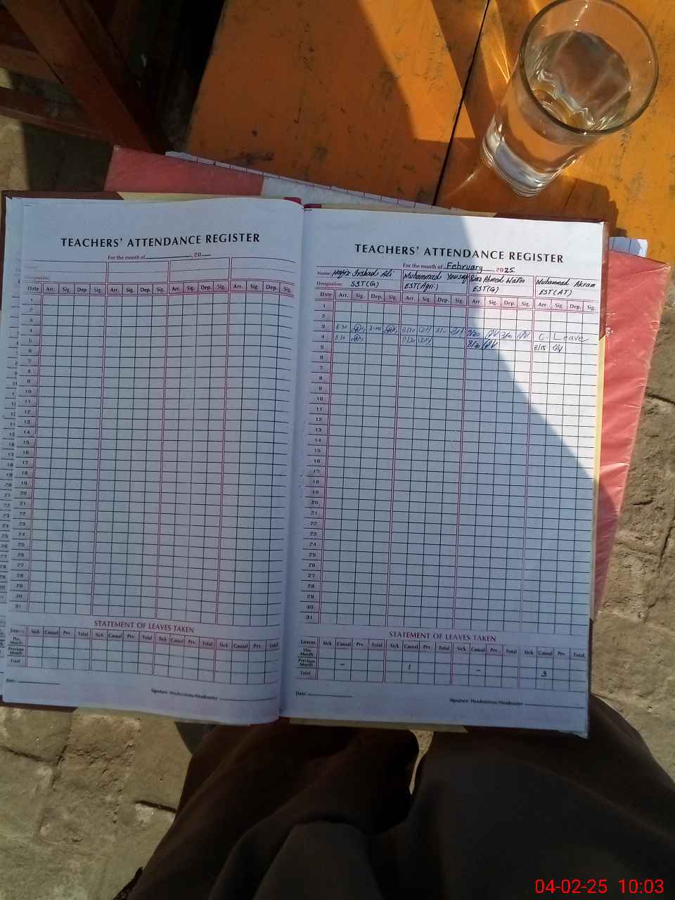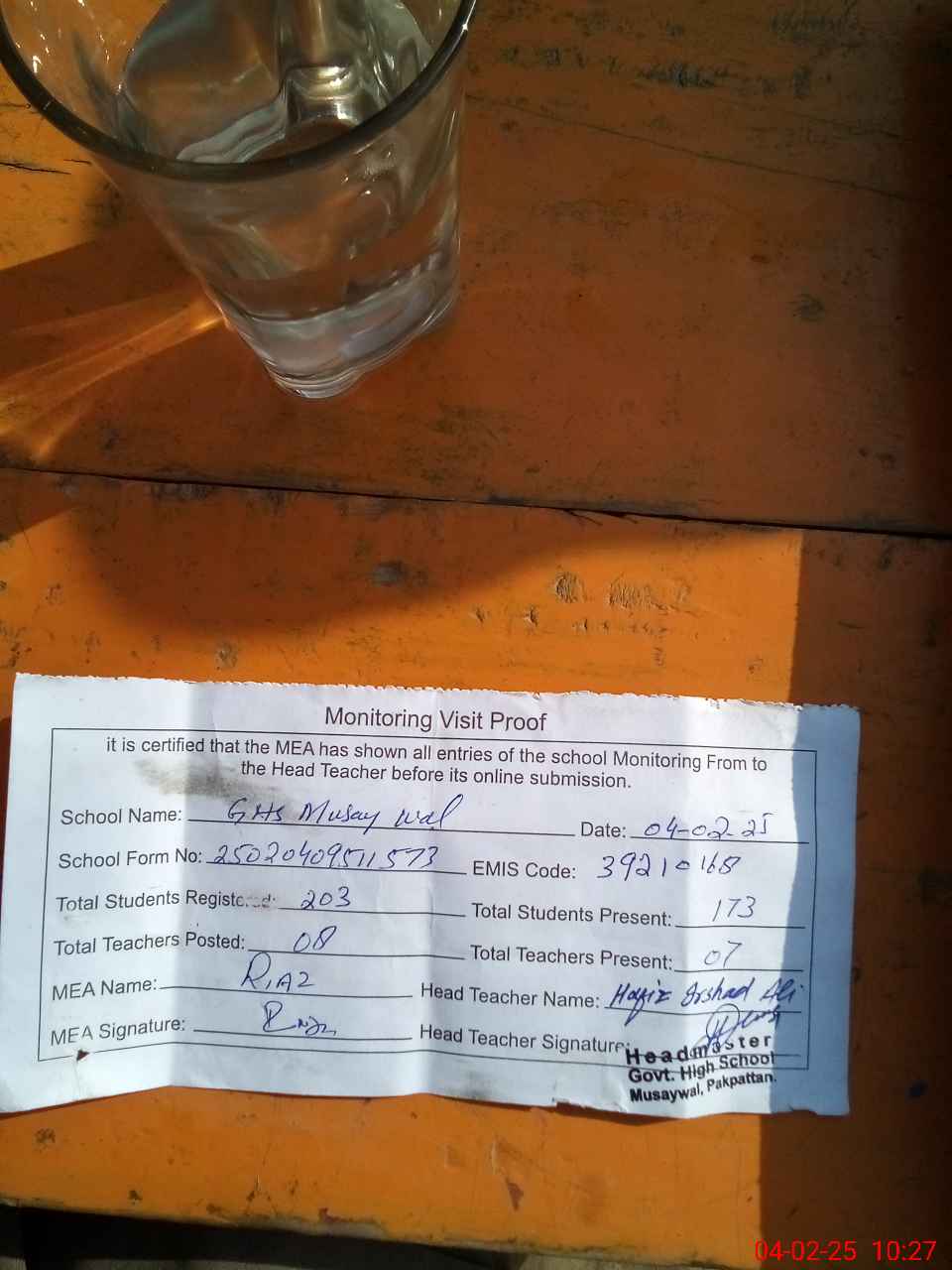 | Attendance Register | Head Teacher | MEA with School | Visit Proof |