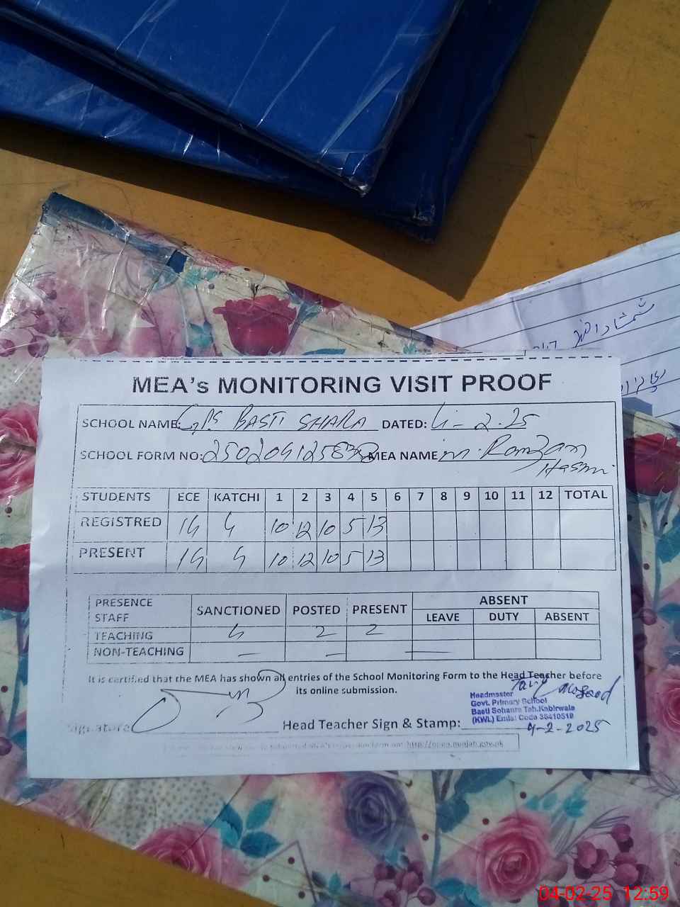 | EMIS Code: 36410518 | Name of School: GPS BASTI SOHARA, MOUZA KOTLI BHUTTA, KABIRWALA | |||
