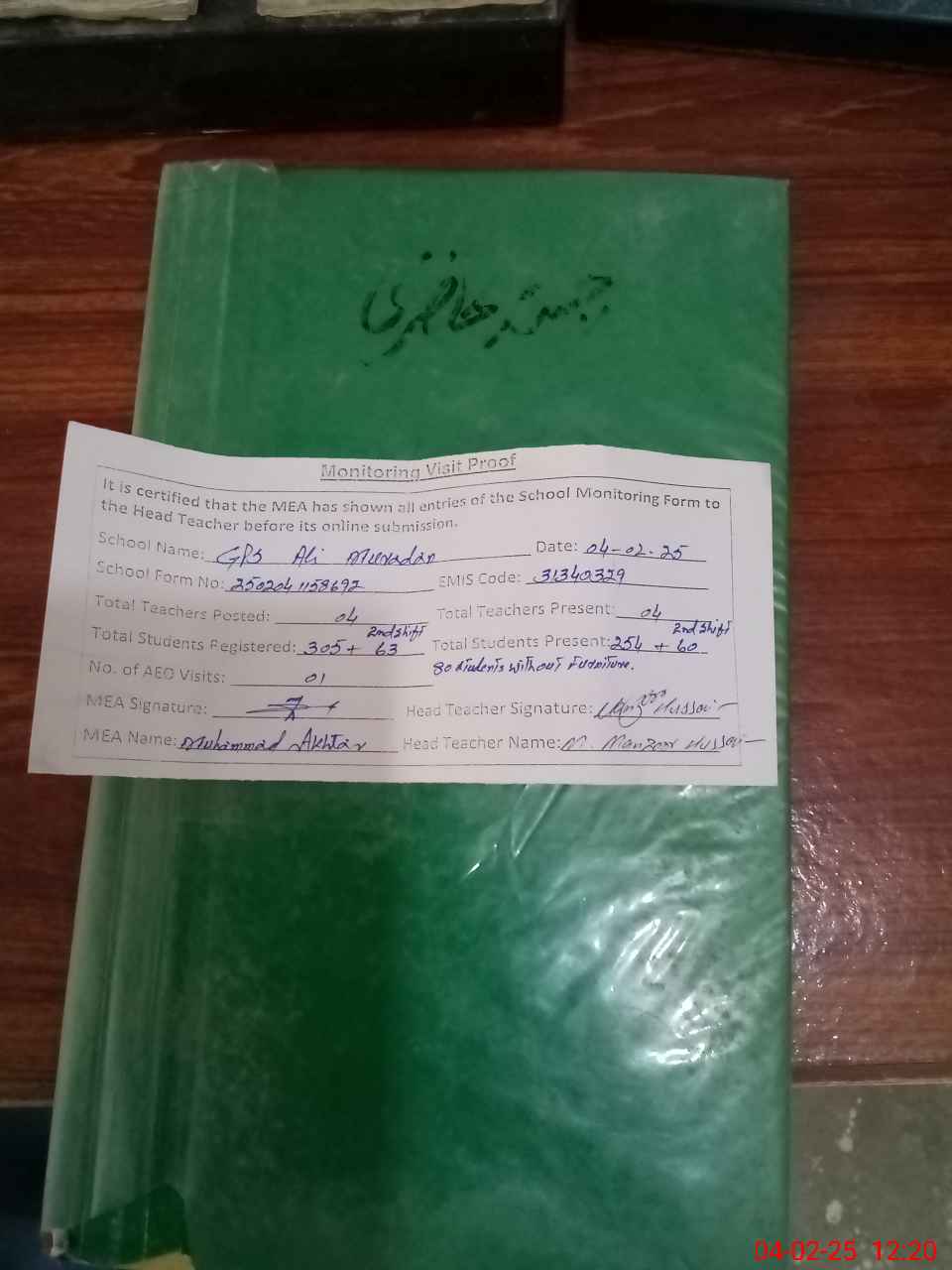 | EMIS Code: 31340329 | Name of School: GPS ALI MURADAN | |||