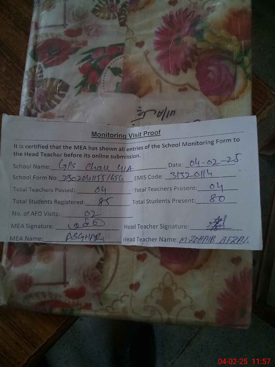 | EMIS Code: 31320114 | Name of School: GPS CHAK 41/A | |||