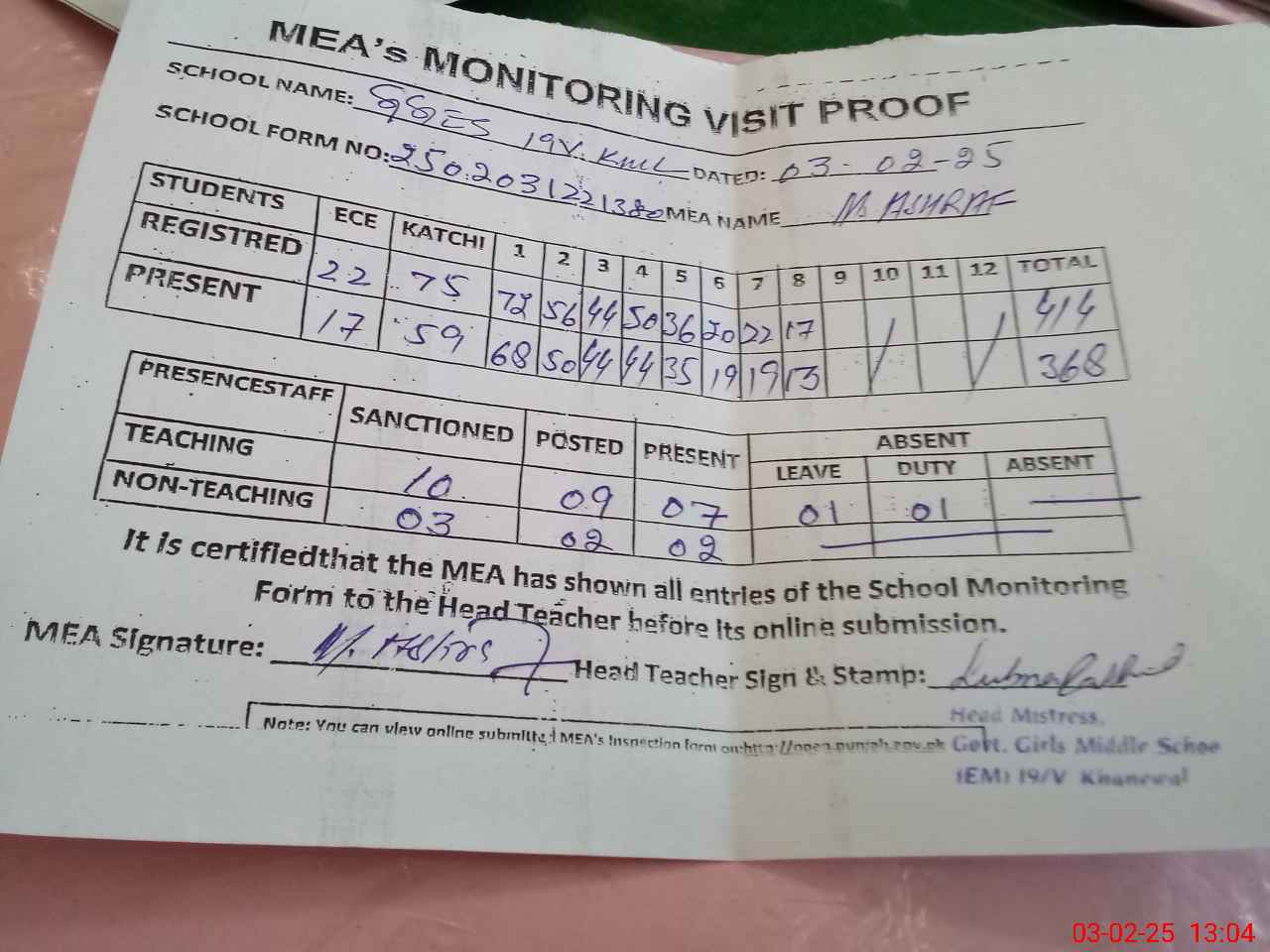 | EMIS Code: 36420393 | Name of School: GGES 19/V, KHANEWAL | |||
