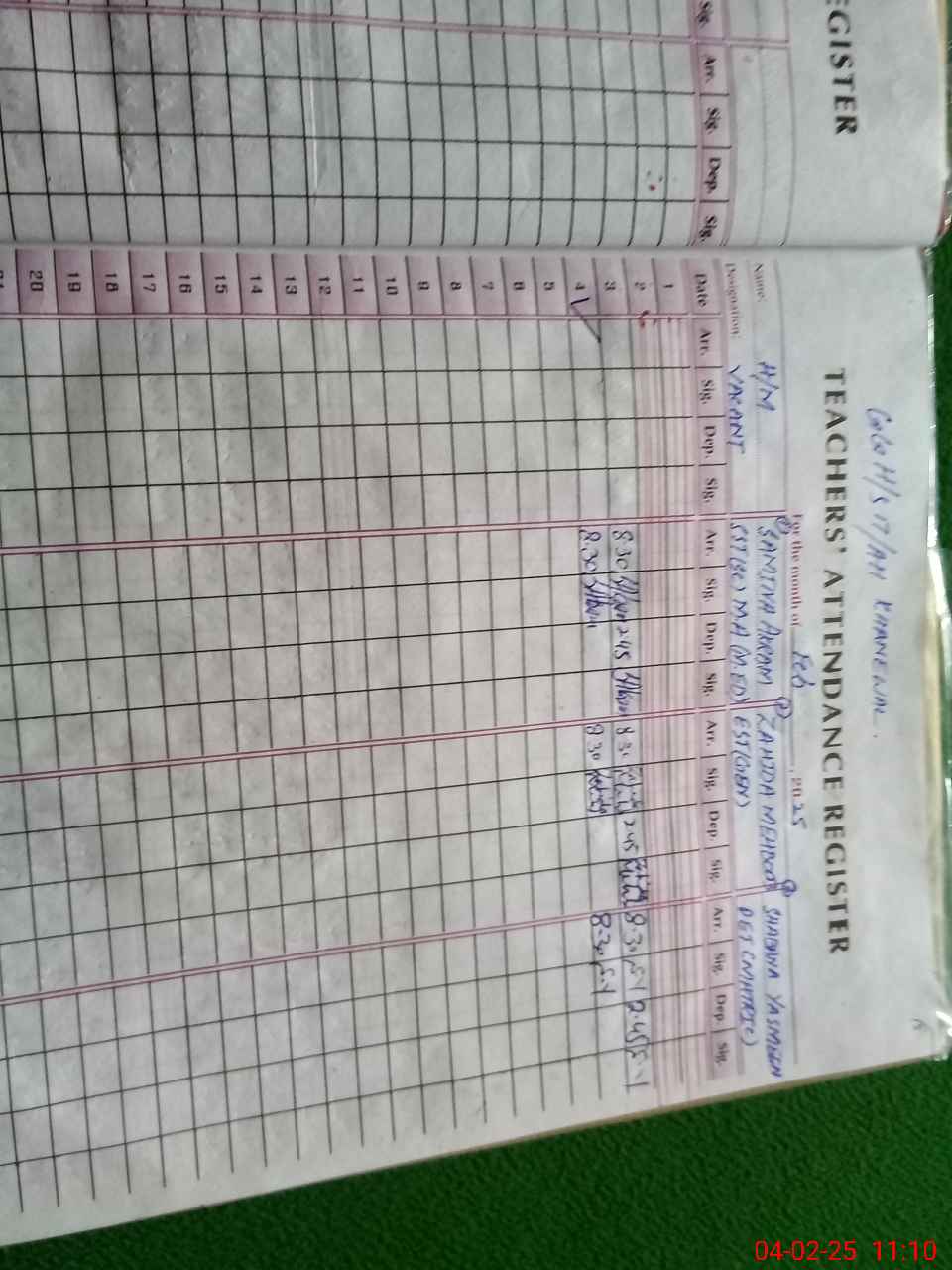 | Attendance Register | Head Teacher | MEA with School | Visit Proof |