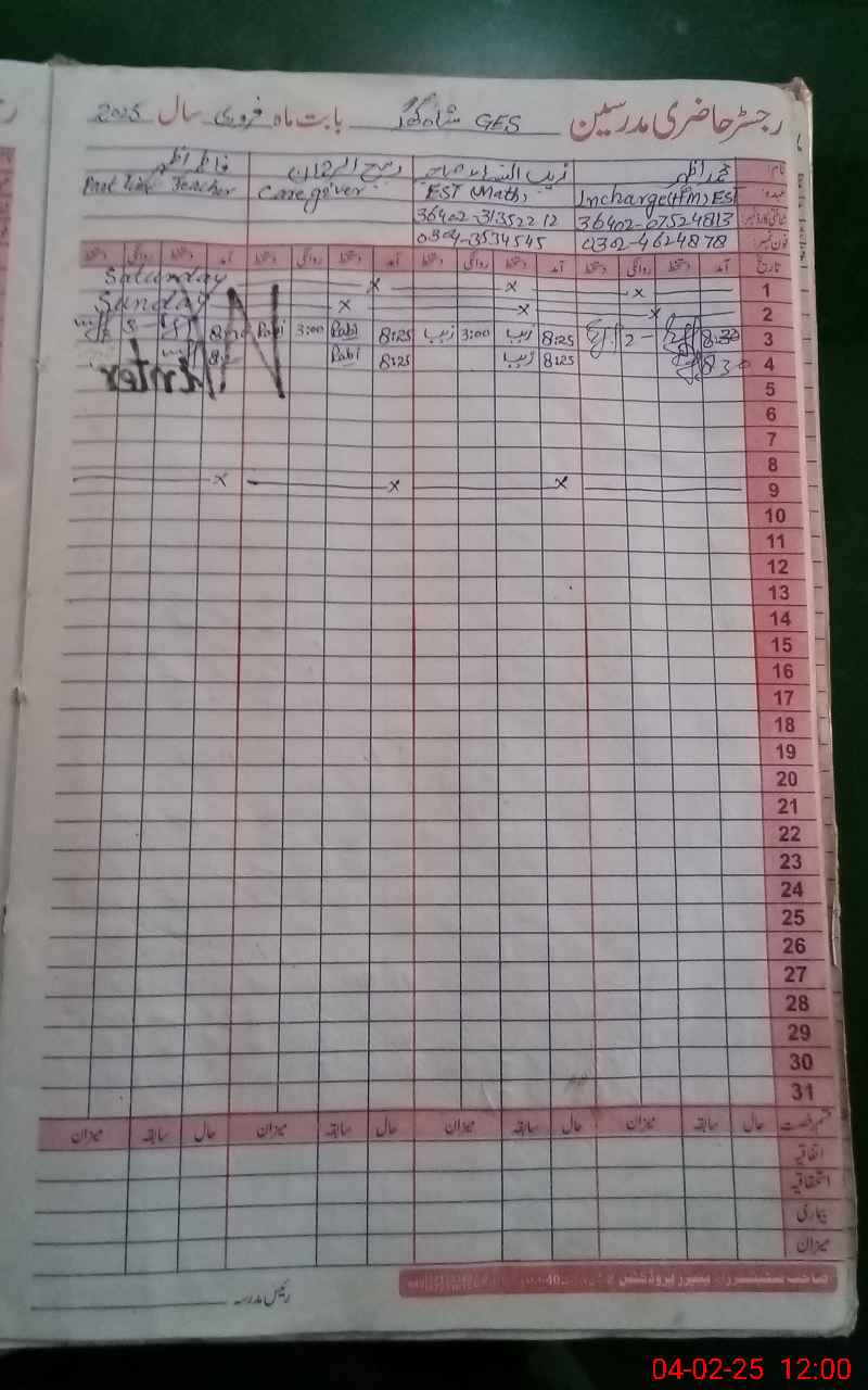 | Name: Mu**** Az**** Designation: (School Headmaster's/Headmistress's) EST Phone/Cell Number: 03**** |