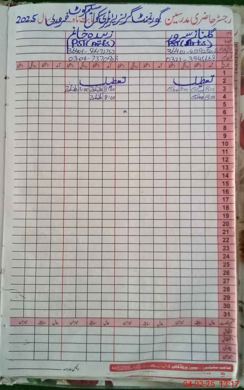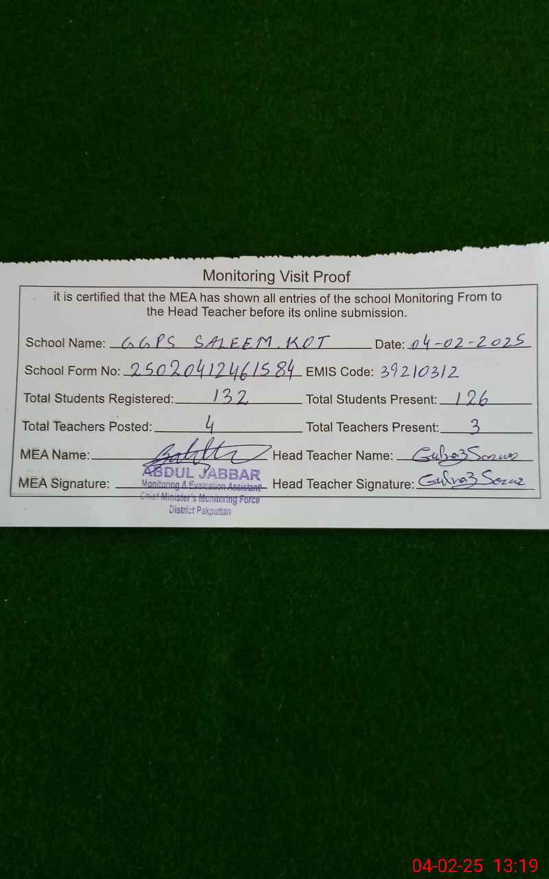 | EMIS Code: 39210312 | Name of School: GGPS SALEEM KOT | |||