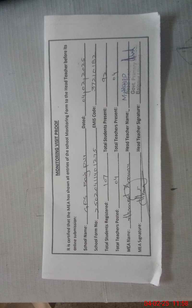 | EMIS Code: 37210182 | Name of School: GPS BAIG PUR | |||