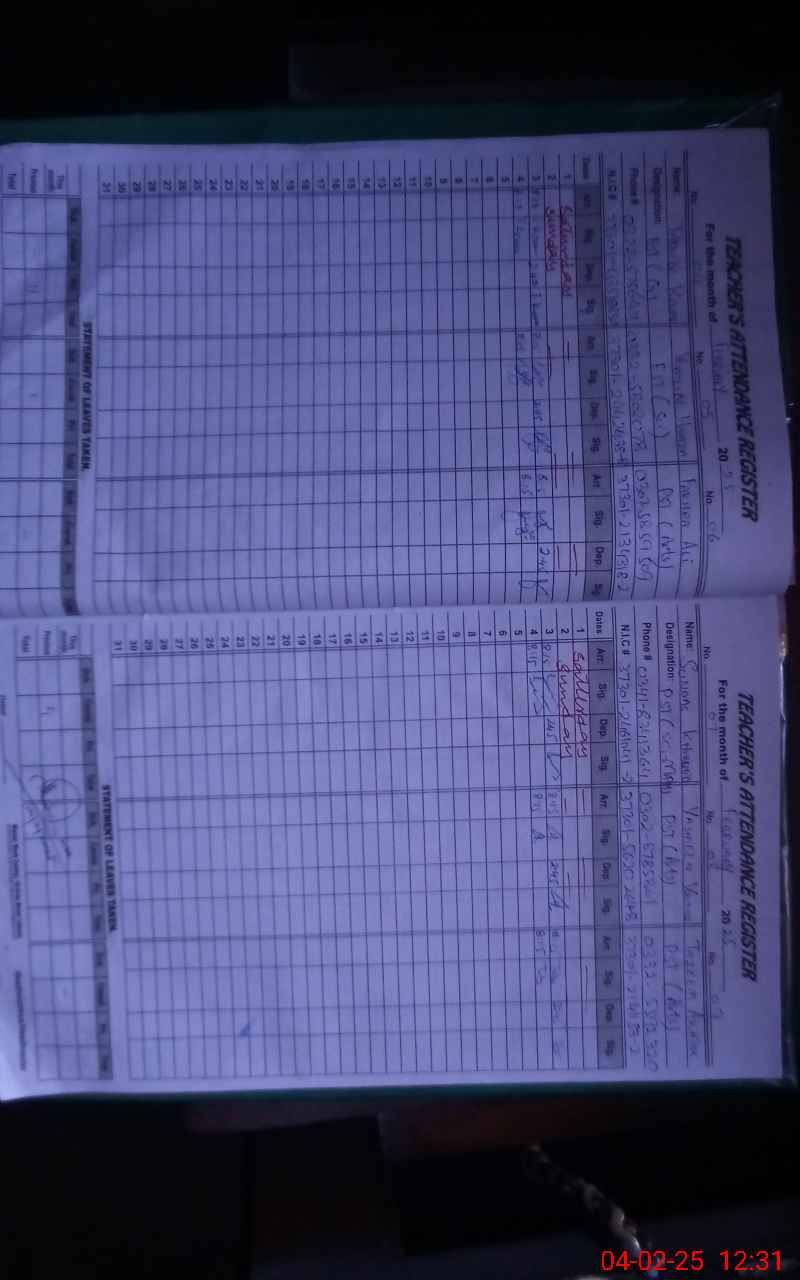 | Name: RI**** BI**** Designation: (School Headmaster's/Headmistress's) Headmaster Phone/Cell Number: 03**** |