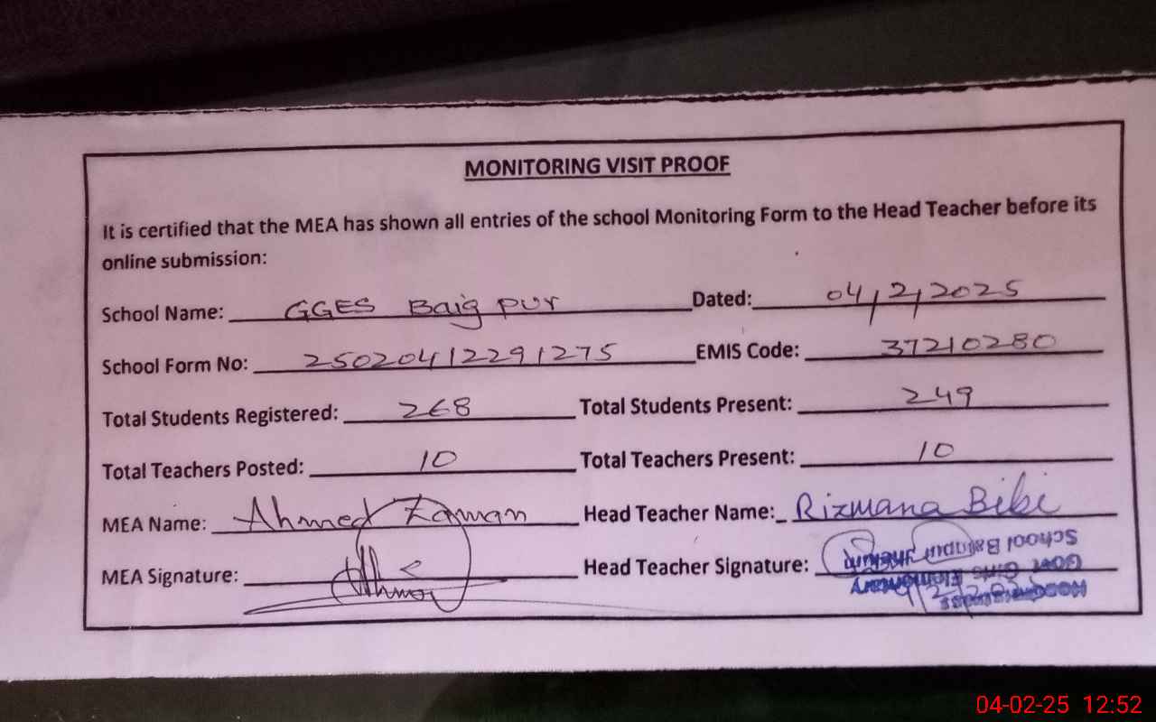 | EMIS Code: 37210280 | Name of School: GGES BAIG PUR | |||