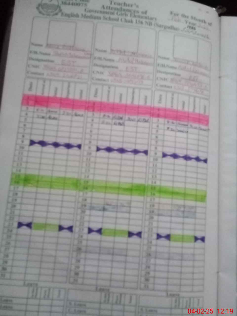 | CNIC | Full Name | Designation | R/C | Absence During Last Calender Month |