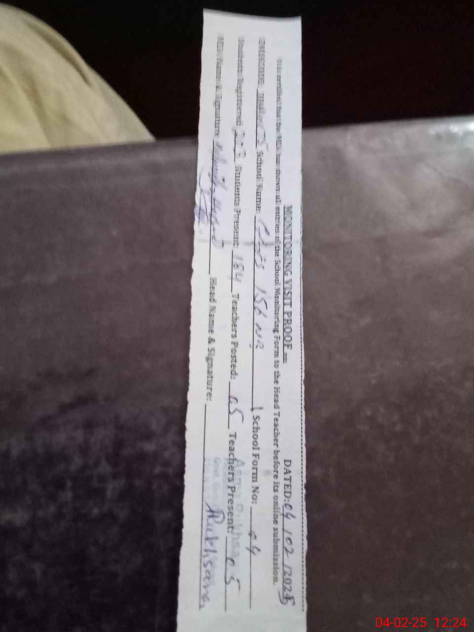 | Attendance Register | Head Teacher | MEA with School | Visit Proof |