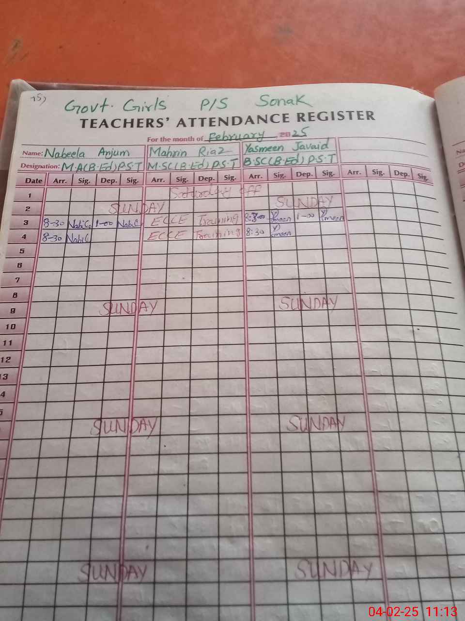 | Name: NA**** AN**** Designation: (School Headmaster's/Headmistress's) PST Phone/Cell Number: 03**** |