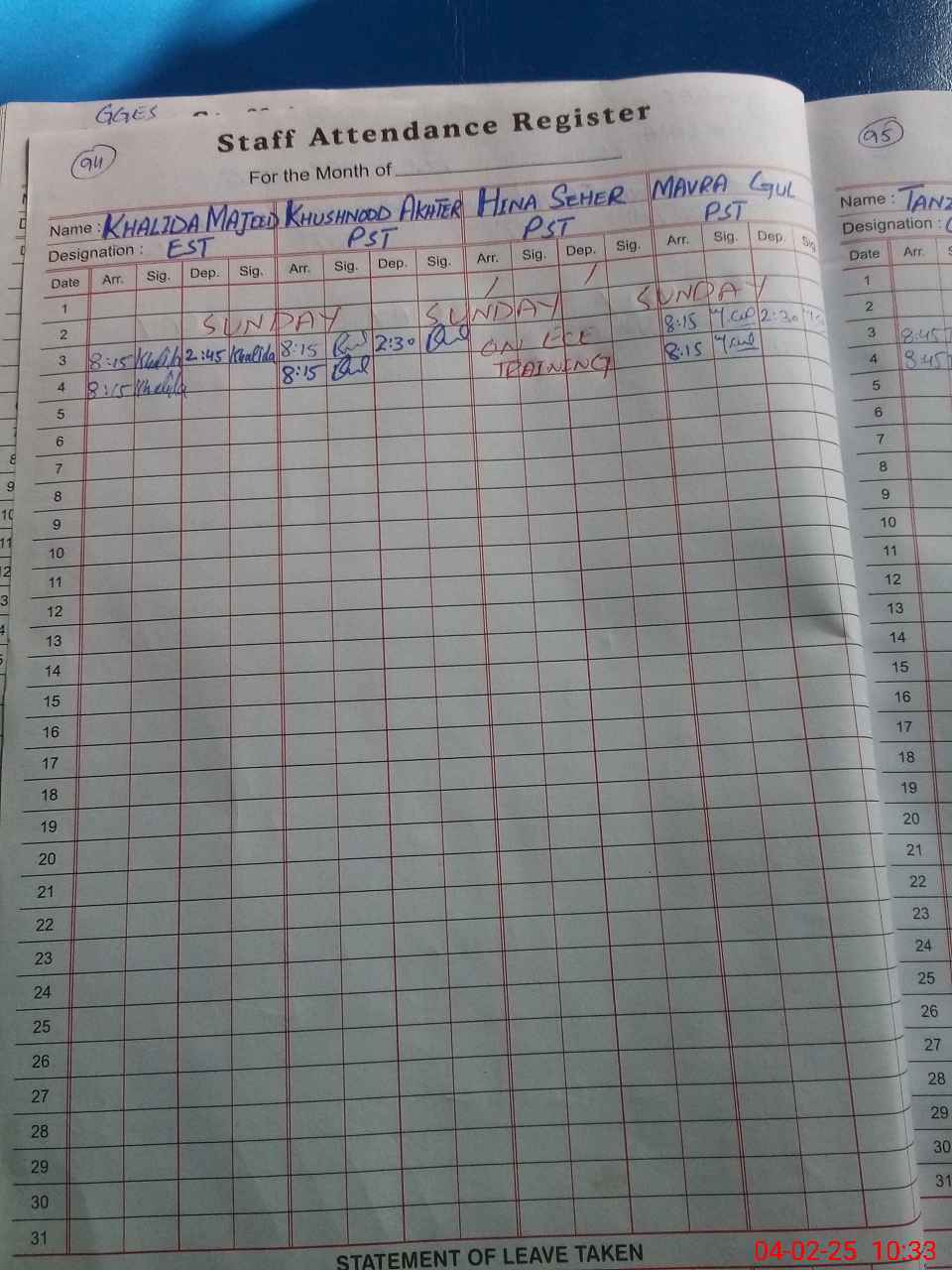 | 31**** | Ma**** Ta**** | 1 | 1 | 0 | 0 | 0 | 0 | 0 | 0 | 0 | 0 | 0 | Absent (Un-Authorized) |