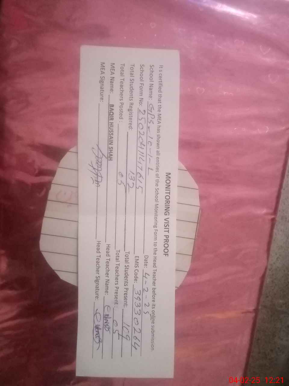 | EMIS Code: 39330264 | Name of School: GPS CHAK NO.10/1-L | |||