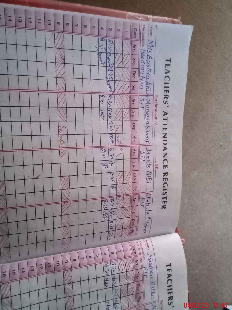 | Attendance Register | Head Teacher | MEA with School | Visit Proof |
