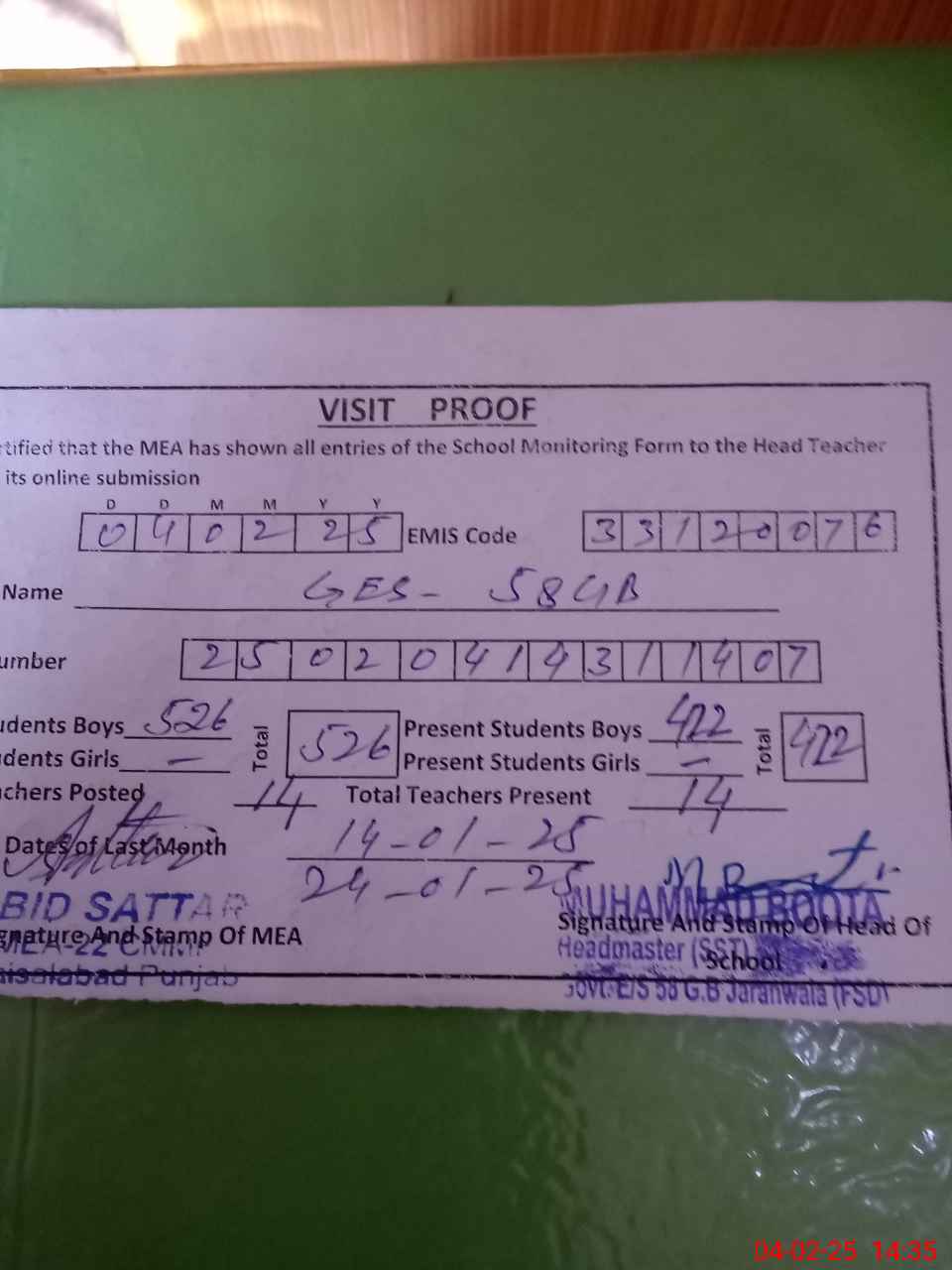 | EMIS Code: 33120076 | Name of School: GES CHAK 58 GB | |||
