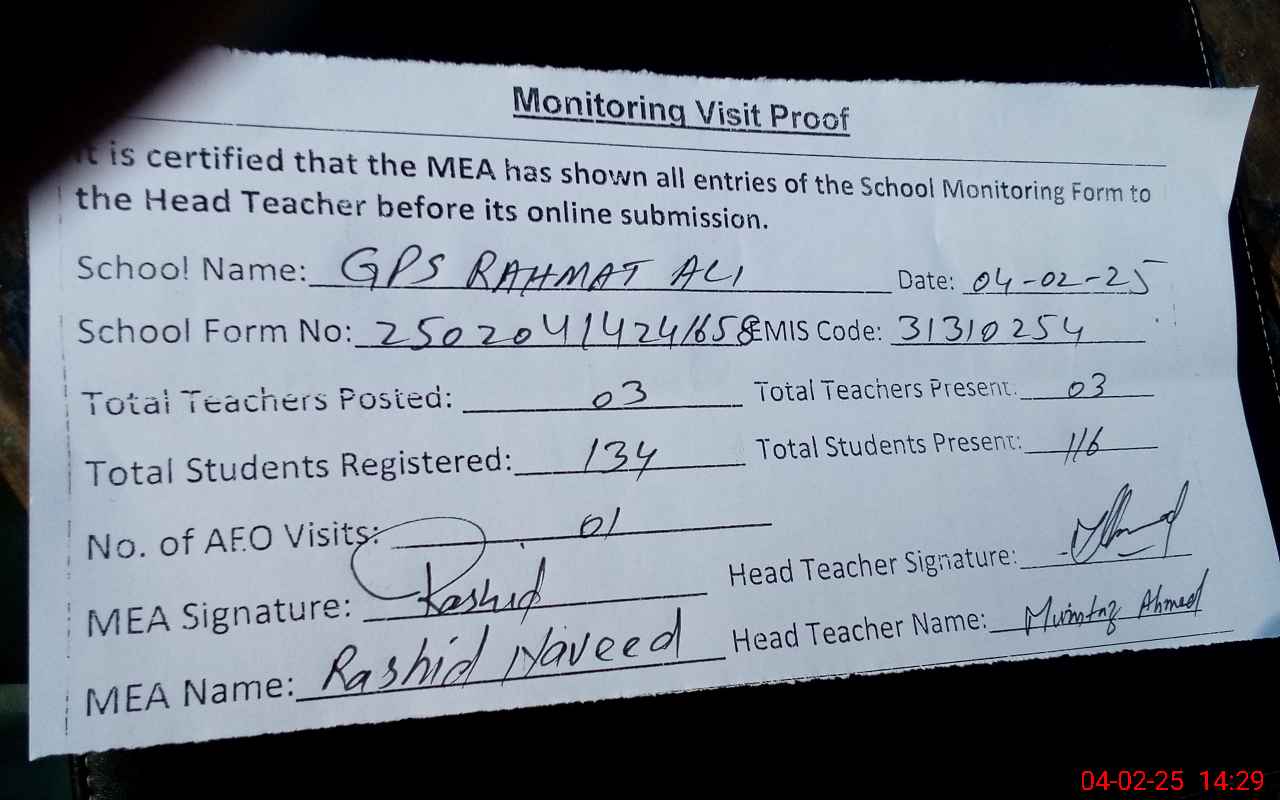 | EMIS Code: 31310254 | Name of School: GPS RAHMAT ALI | |||