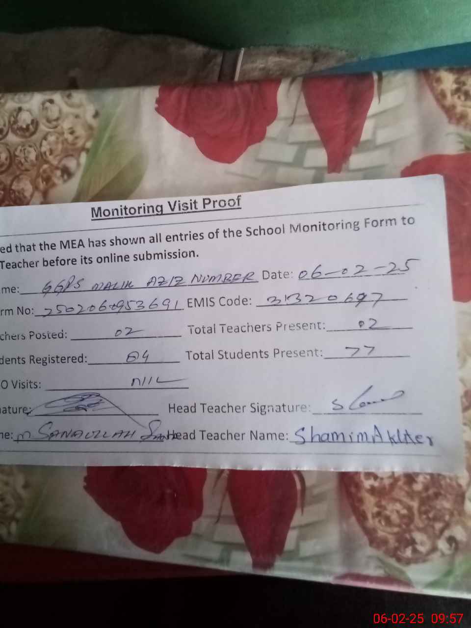 | EMIS Code: 31320697 | Name of School: GGPS MALIK AZIZ NUMBERDAR | |||