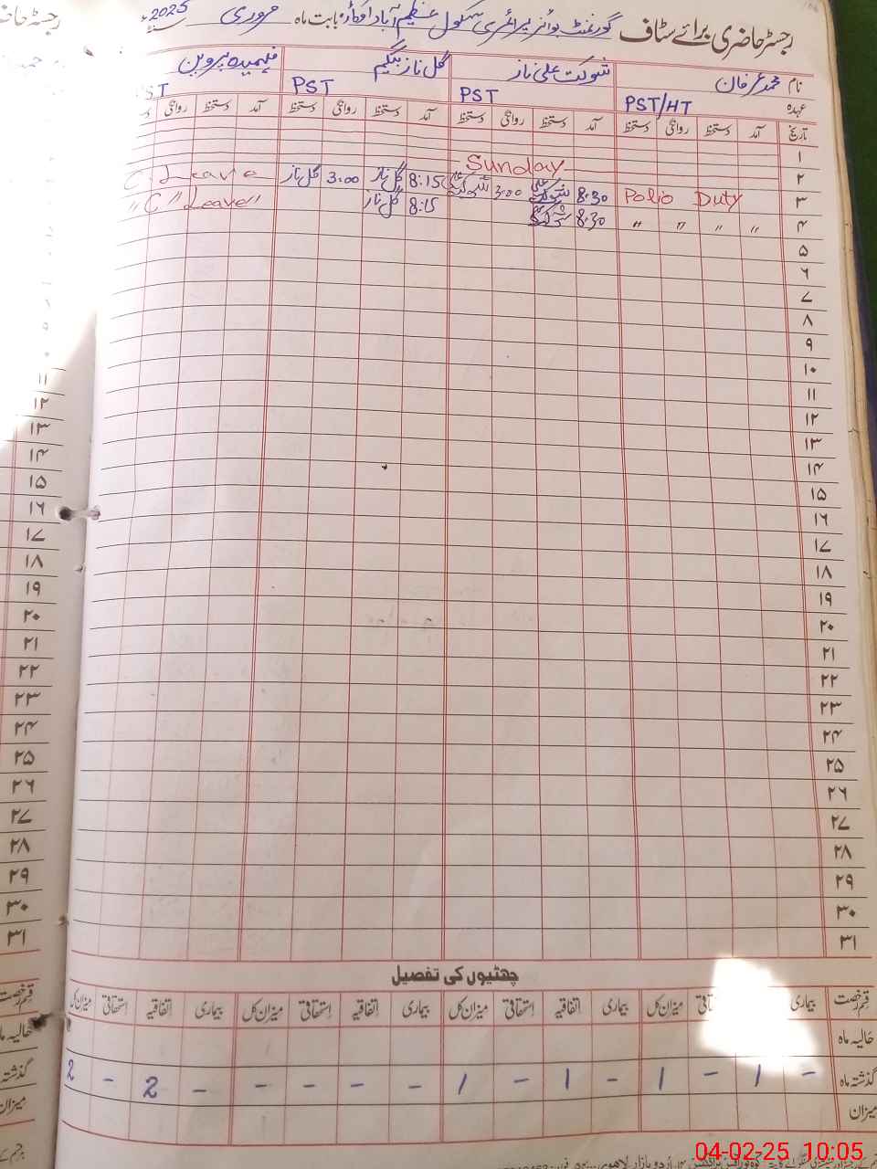 | Name: Mu**** Ir**** Designation: (School Headmaster's/Headmistress's) PST Phone/Cell Number: 03**** |