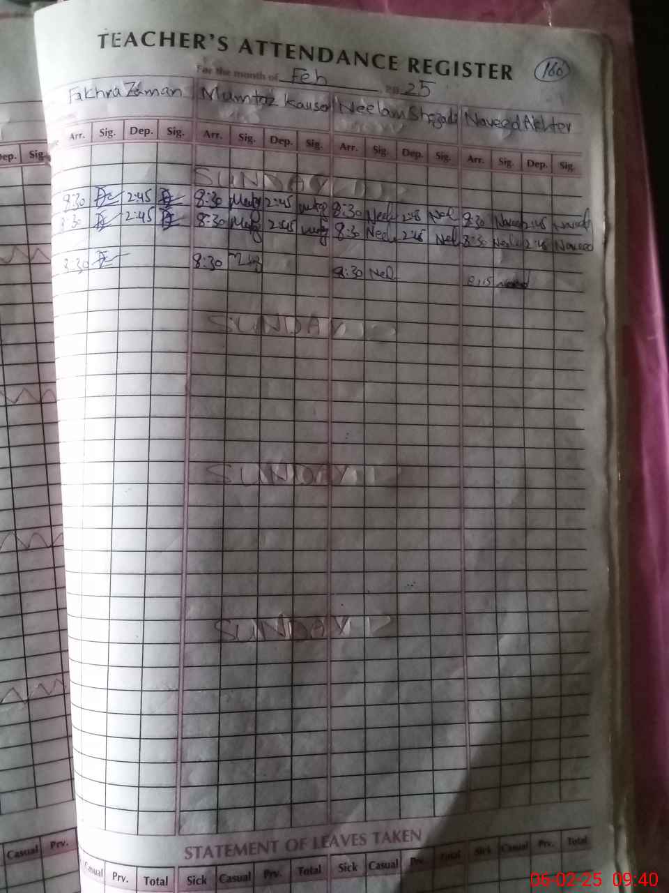 | Leave | Duty | Absent | Maternity | Medical | Ex- Pak |