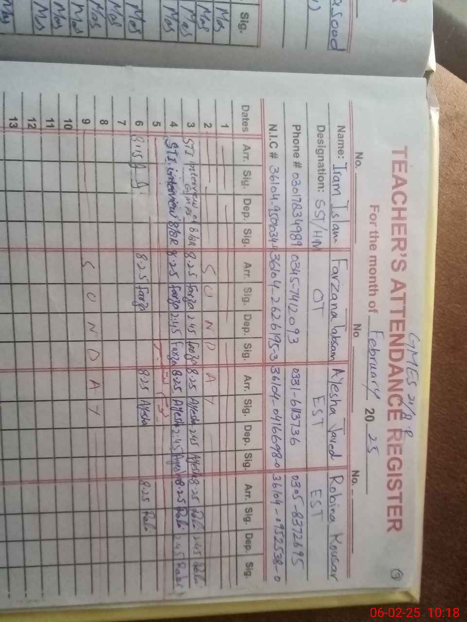 | Name: Ir**** Is**** Designation: (School Headmaster's/Headmistress's) SST Sc Phone/Cell Number: 03**** |