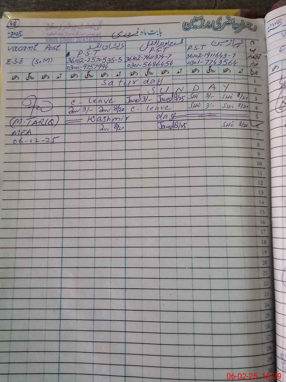 | Name: SH**** HU**** Designation: (School Headmaster's/Headmistress's) PST Phone/Cell Number: 03**** |