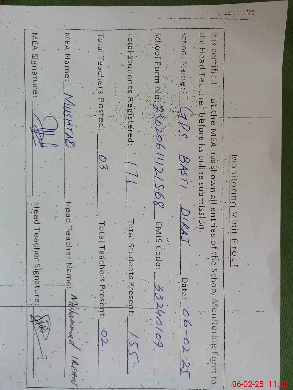 | EMIS Code: 33240109 | Name of School: GPS BASTI DIRAJ | |||