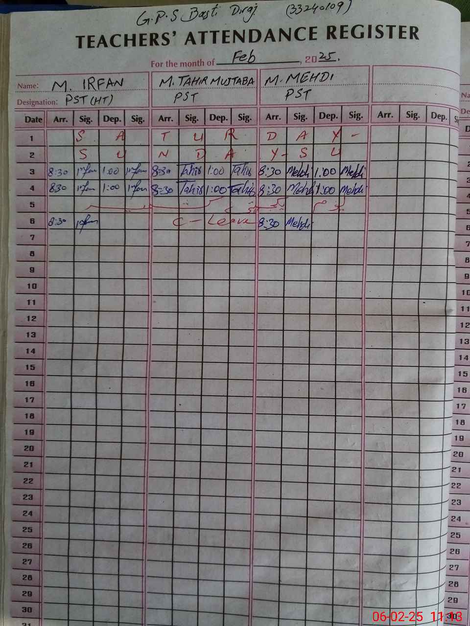 | Name: Mu**** Ir**** Designation: (School Headmaster's/Headmistress's) PST Phone/Cell Number: 03**** |
