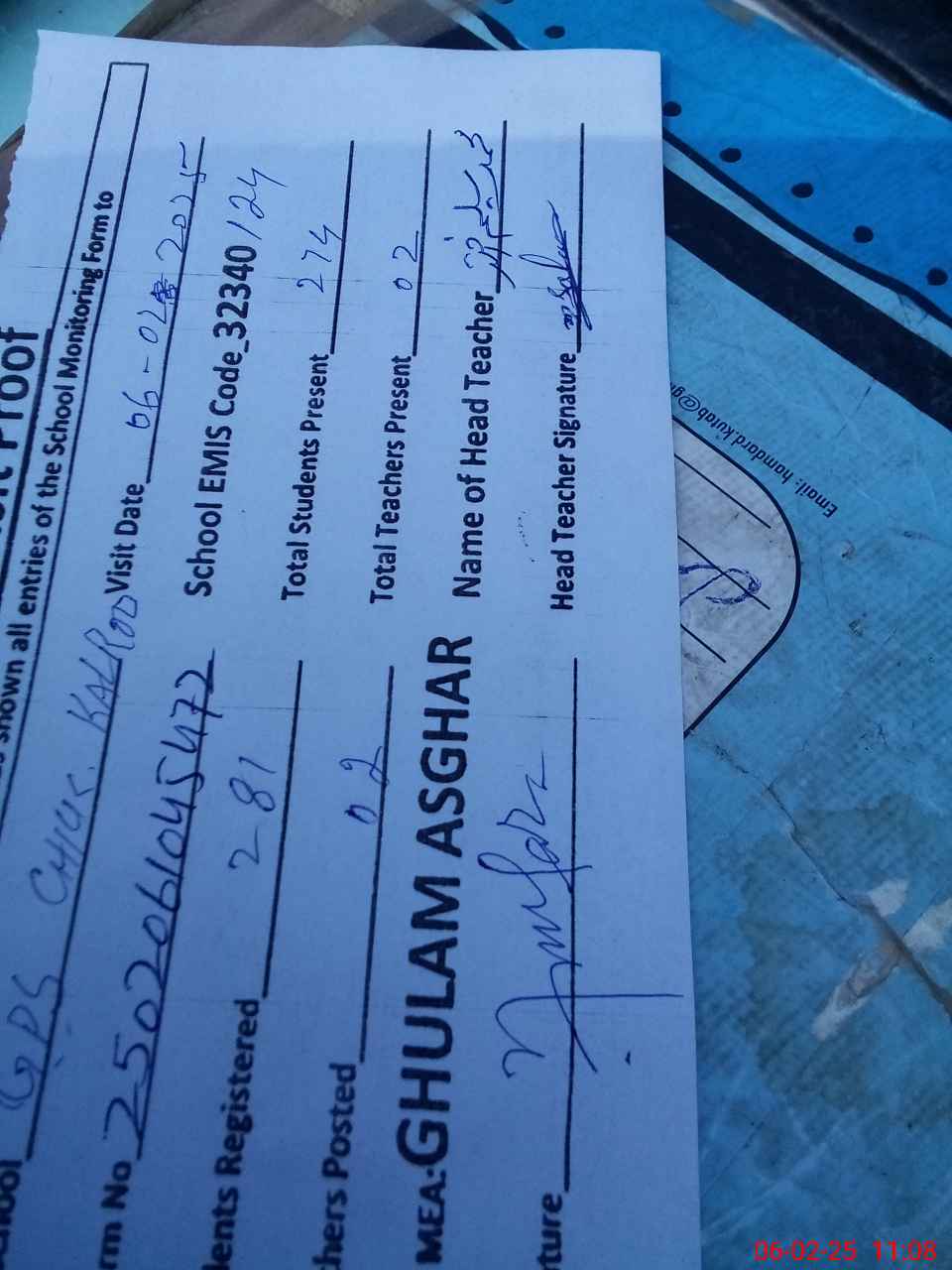 | EMIS Code: 32340124 | Name of School: GPS CHAK KALROO | |||