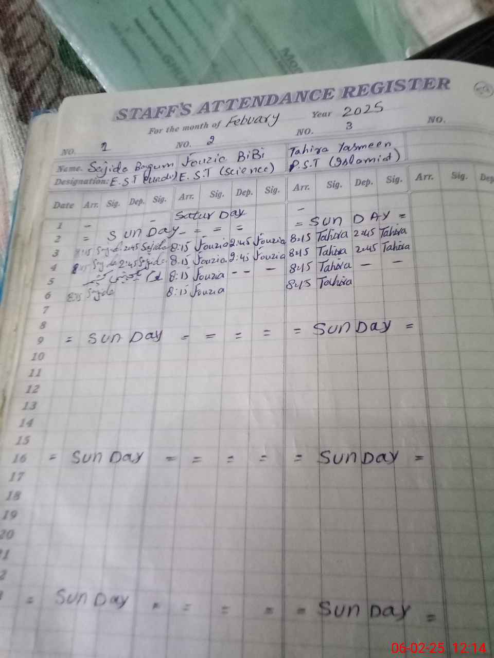 | CNIC | Full Name | Designation | R/C | Absence During Last Calender Month |