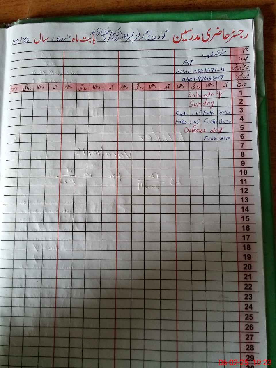 | Name: Ma**** Ar**** Designation: (School Headmaster's/Headmistress's) PST Phone/Cell Number: 03**** |