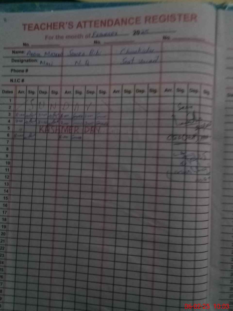 | Name: Sa**** Wa**** Designation: (School Headmaster's/Headmistress's) SST Phone/Cell Number: 03**** |