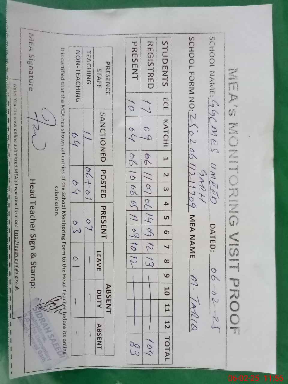 | EMIS Code: 36410453 | Name of School: GGCMES UMEED GARH ABDUL HAKIM | |||