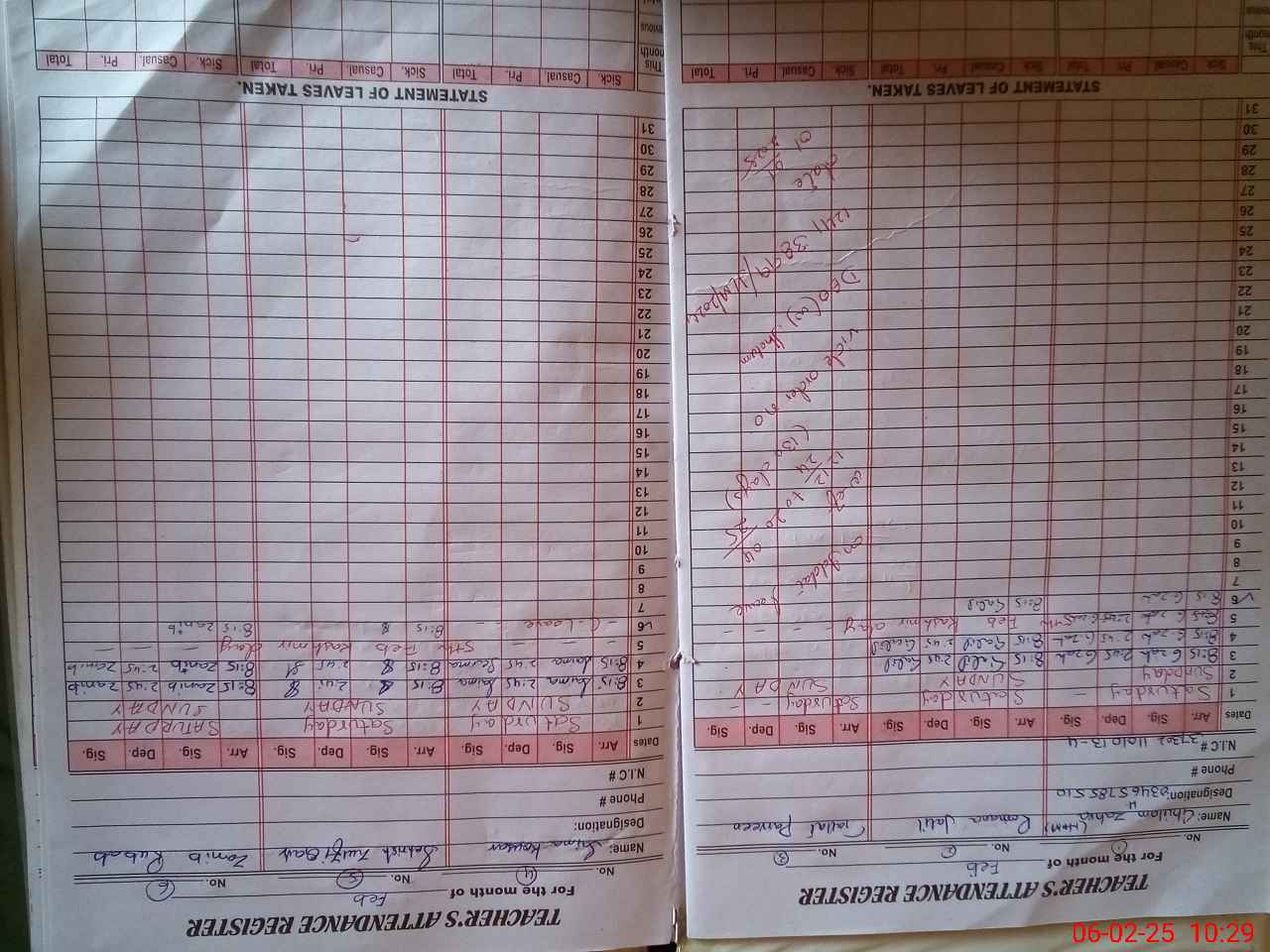 | CNIC | Full Name | Designation | R/C | Absence During Last Calender Month |