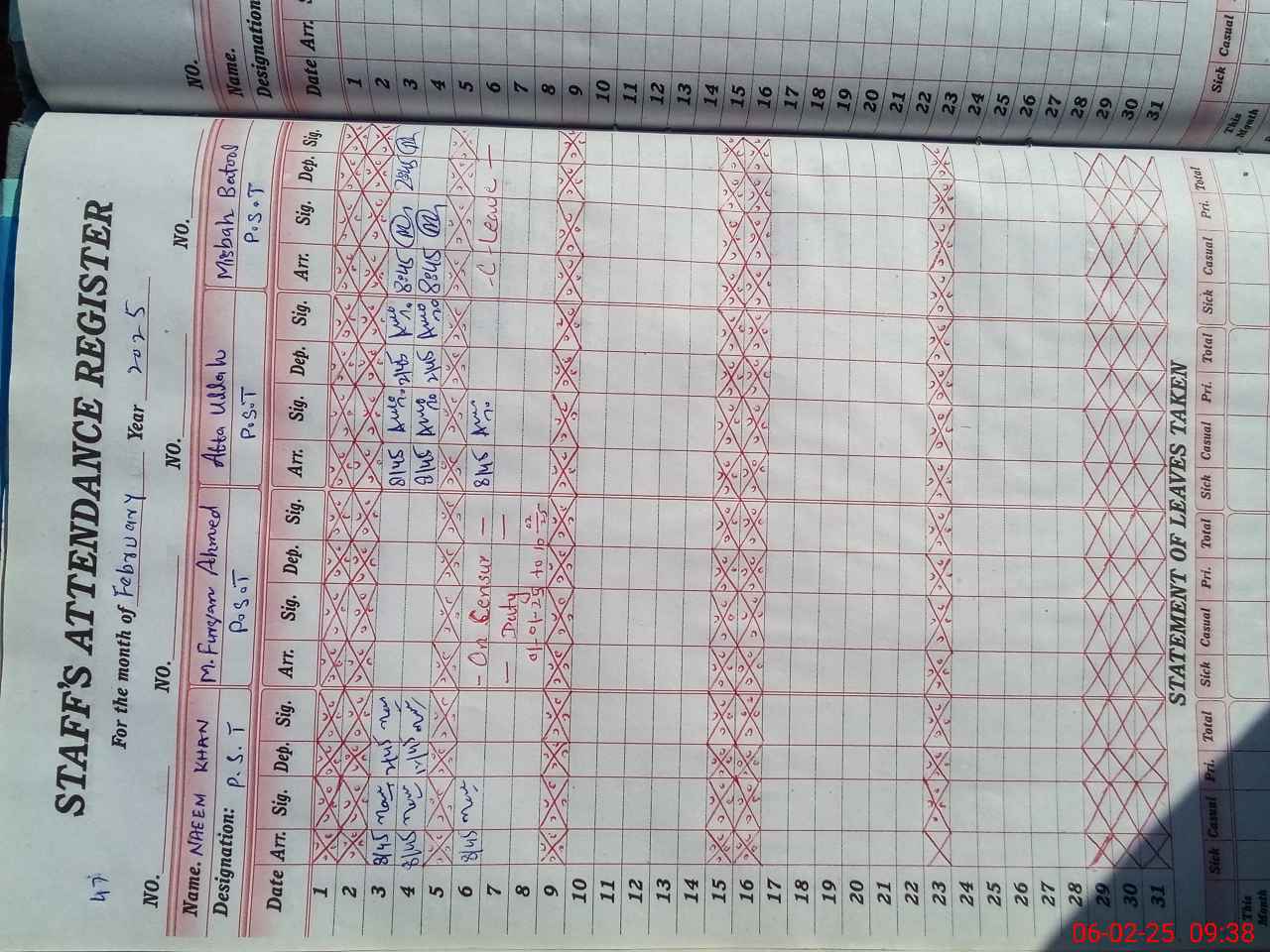 | Remarks (Use Separate Page if Required): 1 Mr Muhammad Furqan Ahmed PST teacher on agriculture census duty 2 Daily attendance of students is not marked on SIS | |||||