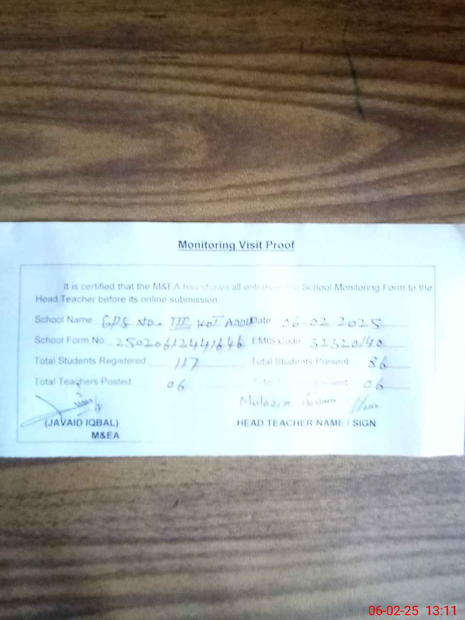 | EMIS Code: 32320140 | Name of School: GPS KOT ADU NO. 3 | |||
