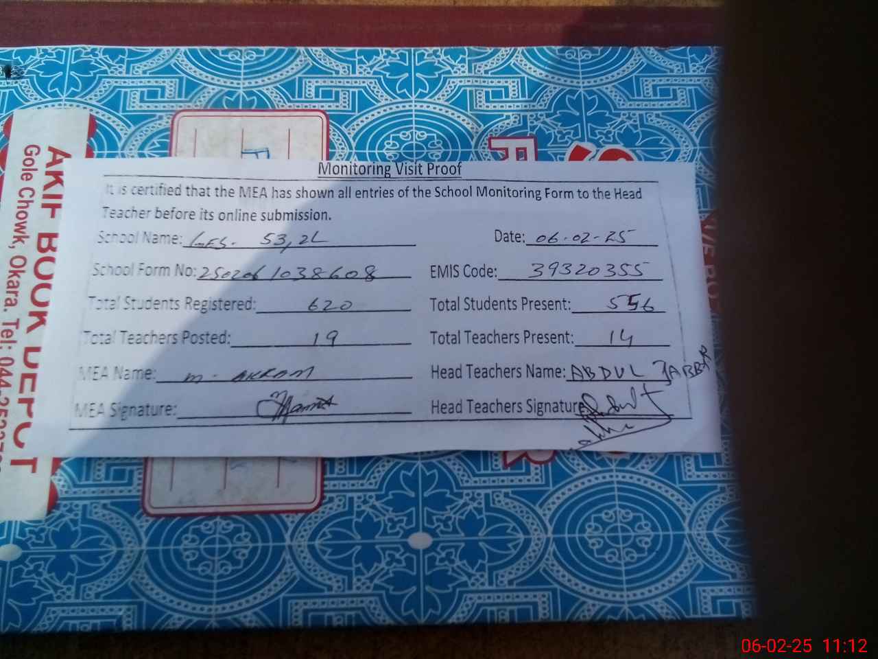| Certified that this School was Inspected by the Undersigned MEA/DMO Today and the Information Stated Above is as Per Record. | |||||
