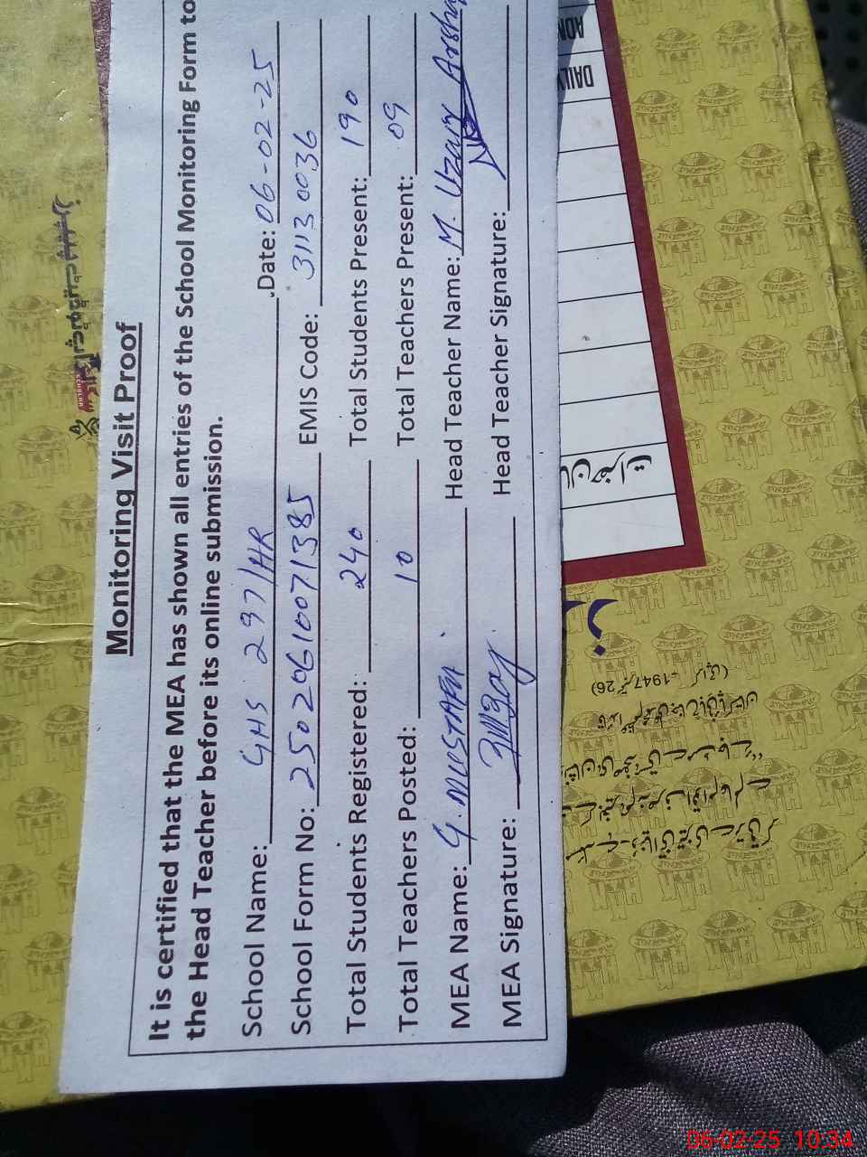| EMIS Code: 31130036 | Name of School: GHS CHAK 297/HR | |||